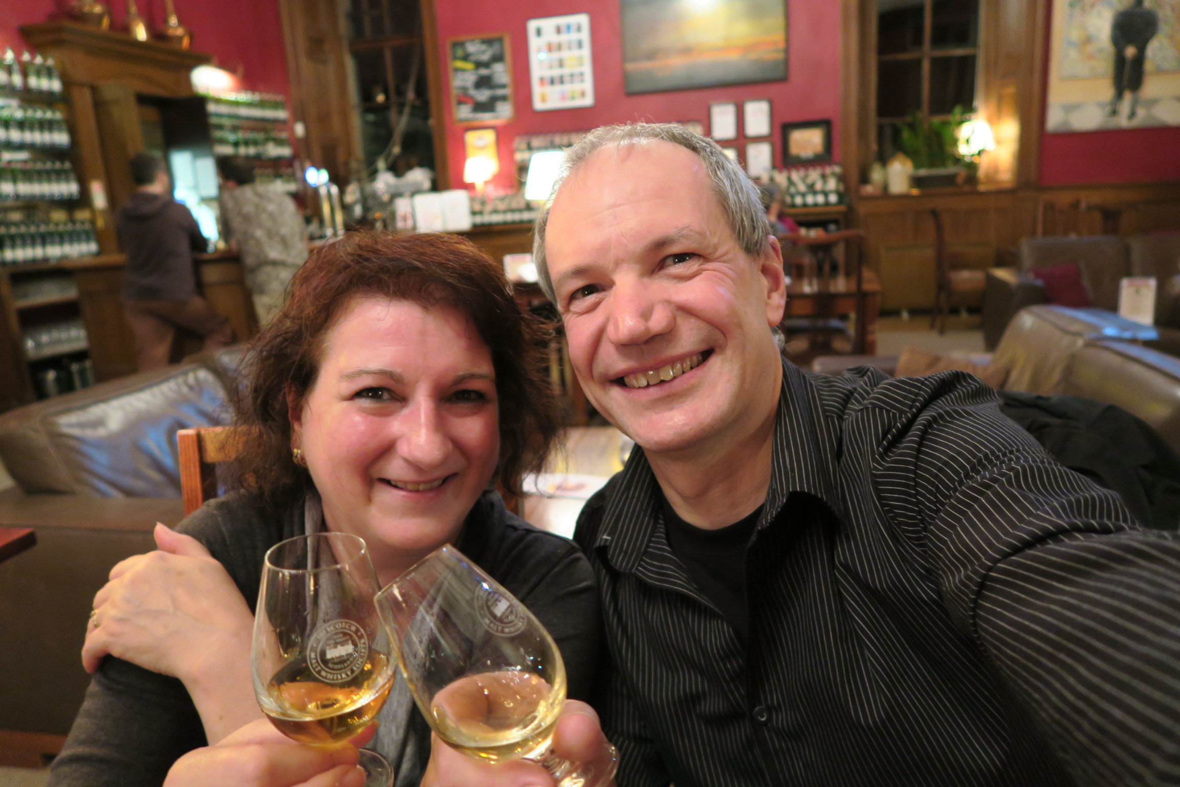 Zurück in der Stadt - inzwischen regnet es ununterbrochen - fahren wir in's The Scotish National Museum und genehmigen uns einen kleinen Lunch. Der Eintritt und die Besichtigung des Museums ist kostenlos. Das sind wir uns gar nicht gewöhnt ;-) deshalb machten wir noch einen kurzen Abstecher in die Schottische Nationalbibliothek. Danach - es regnet immer noch - spazieren wir durch die Oldtown zum Guild Ford Arms und genehmigen uns ein Bier. Das Pub sieht sehr schön aus und scheint sehr beliebt zu sein, den er füllt sich immer mehr. Hier hat sich auch Rowan Lockhart vielmals am Feierabend einen Singleton genehmigt. Am Abend fuhren wir nach Leith in The Vault der Scotch Malt Whisky Society um etwas zu essen. Es war sehr gut und die Club-Atmosphäre war sehr gediegen. Die Whiskies welche wir probiert haben schmeckten ausgezeichnet.